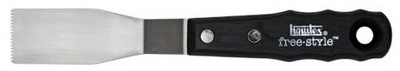 Free-Style Painting Large Serrated Spatula is 3" x 1.5" perfect for scraping, scumbling, scratching, mixing or spreading most materials. The high cranked handles protect hands and knuckles from contacting the painted surface.