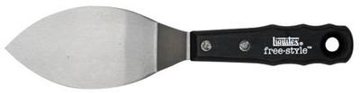 Free-Style Large  Painting  Spade is 2.5" x 5"perfect for scraping, scumbling, scratching, mixing or spreading most materials. The high cranked handles protect hands and knuckles from contacting the painted surface