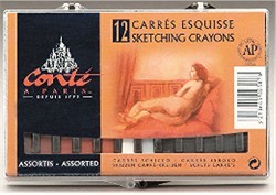 Classic Colour Set: The 12 tradional Conte crayons ideally suited for classic drawing techniques. Conte Crayons are clay based drawing implements that create bold precise lines, the open edge can be applied to the paper to create a wide textured line. Often used to draw the figure and portraits, they hold there shape making for a consistent dust free mark that can become a reliable tool in any artist's easel.