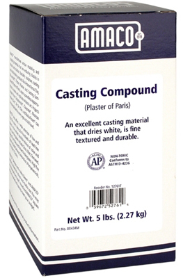 Amaco® Casting Compound (Plaster of Paris) is an excellent material for making molds and casting objects. When mixed with water and poured into a form, it sets hard in just a few minutes. Cast pieces and molds are white, fine textured, and durable.