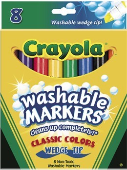 8 chisel-tip Crayola Ultra-Clean washable markers in classic colors