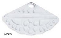Multisection plastic palette. Large fan shaped palette has hole for thumb and 24 assorted sized sections for storing paint and mixing color. Stain resistant. 8"x14.5"
