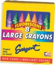 Sargent Art's flourescent crayons in classic 8 color tuck box pack in two sizes.