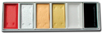 Colors contained in this set: Metallic Pale Gold, Metallic Reddish Gold, Chinese White, Red, Black and Silver