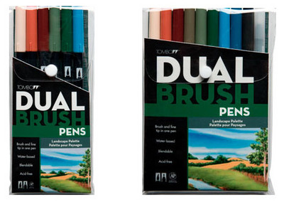 Tombow Dual Brush Pens come in one version of Landscape assortment. Each marker has two sizes of brush on either side, making this a versitile tool for your illustraiting and coloring needs.