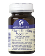 The ultimate alkyd painting vehicle, Grumbacher® Alkyd Painting Medium is a thixotropic painting medium (the more you stir, the more fluid it becomes). Lubricates oil color for easier gliding over surface while retaining control. Allows up to 8 hours of painting with little, if any, brush drag. Surface will dry to the touch, enough to paint over within 12 hours. Ideal for use as glazing medium producing rich, transparent, luminous glazes over dried under-paintings. Odorless, possessing no chemical or petroleum aroma. For best results, shake well before using. May be diluted with any conventional oil painting solvents. Non-yellowing and archival. Add in small doses to paint until desired consistency is met.