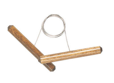 The Clay Cutter is used for slicing and cutting lump clay. It also cuts pots and other items from the throwing head of the potter's wheel. Hardwood 3" toggle handles are firmly fastened to approximately 18" of fine quality stainless steel wire.