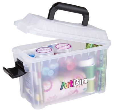 A unique design, sturdy construction and transparent plastic make the Mini Sidekick™ ideal for art and craft supply storage. A sturdy handle, lockable lid and smaller size make the Mini Sidekick™ ideal for transporting supplies. Perfect for kids crafts!  11"x5.5"x7"