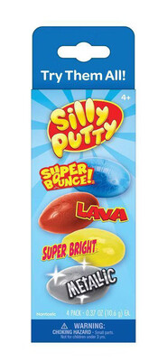 Experience the joy of play and creativity with the Silly Putty 4ct Specialty Pack from Crayola. This set includes four unique specialty eggs: Superbounce (blue), Lava (orange), Superbright (yellow), and Metallic (silver). Each egg offers a distinct tactile experience, making it perfect for sensory play. Silly Putty has been a cherished toy for over 70 years, celebrated for its ability to bounce, mold, snap, and stretch. It’s an excellent fidget toy, requiring no hand-eye coordination, making it accessible for all. The Silly Putty 4ct Specialty Pack is more than just a toy. It’s a tool for imagination, a catalyst for creativity, and a source of endless fun. It’s a timeless classic that continues to bring joy to children and adults alike. Whether you’re molding it into your favorite shapes, bouncing it off the walls, or simply squeezing it in your hands, Silly Putty offers countless ways to play. It’s not just about the fun, though. Playing with Silly Putty also helps develop fine motor skills. This set is perfect for gifting, making it a great solution for stocking stuffers, Easter basket stuffers, and party favors. Plus, it’s nontoxic, ensuring safe play for your little ones. This product is recommended for children aged 4 and up. Enjoy the endless possibilities with the Silly Putty 4ct Specialty Pack from Crayola.