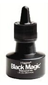 Higgins Black Magic is a premium quality intense ink which dries to a semi-flat black finish on most surfaces. It is ideal for use with technical pens and airbrushes, dip pens or brushes. Black Magic is waterproof, permanent, fadeless and acid-free.