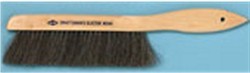 Comfort-fitting curved handle 15 1/2" long brush that holds sterilized mixed horsehair in a single row of tufts to provide a stiff brushing action.