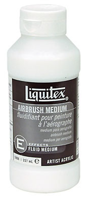 Liquitex Airbrush Medium is specifically formulated to thin acrylic colors for airbrush application. Mixing colors with Airbrush Medium will ensure that the colors do not lose their flexibility, durability and adhesion.