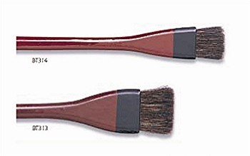 lacquer-handled hake brushes made with extremely stiff dark Samba hair. Helpful for use on delicate, absorbent oriental papers.