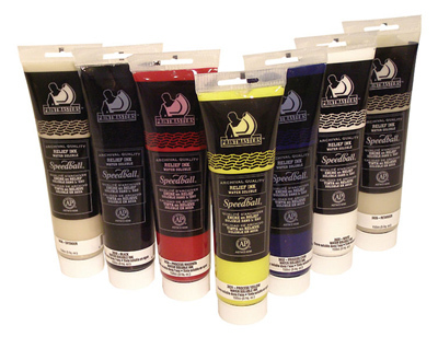 Printmasters Relief Inks in 150 ml tubes are designed for the accomplished printmaker and come in 5 Colors and in a 5 Color Set; these vibrant, highly pigmented, intense true process colors allow you to achieve an unlimited color spectrum. *viscosity similar to that of oil-based inks *water-soluble and compatible with all Speedball water-based block printing inks *AP non-toxic. Easy clean up with water. Printmasters inks can be used in combination with Speedball extender base to create vibrant transparent layers for producing extended color ranges.