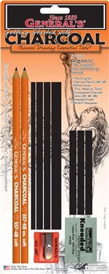General Pencil's comprehensive Charcoal starter kit consists of: Charcoal Pencils 4B,6B 5 Medium Willow Charcoal Sticks 3 Compressed Charcoal Stick 2B,4B,6B Kneaded eraser sharpener