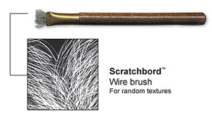Wire Brush Use the wire brush for creating random textures like hair, grass and fur. Curved stainless steel wires are held together in this wood handled tool.