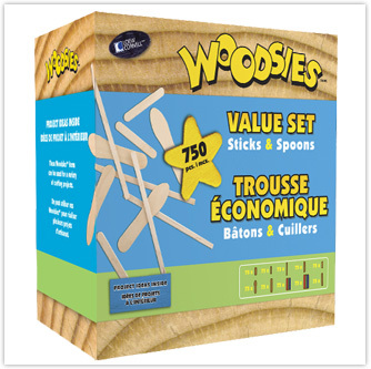 Woodies Sticks & Spoons Value Set contains 750 pieces and features both natural and colored pieces.