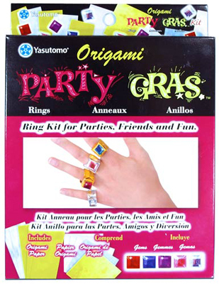 NEW!  Fold up some fun and be the life of the party! The Party Gras ring making kit is a great origami activity for hours of festive fun. Fold easy to make colorful foil origami rings with dazzling gems on top. No glue required and easy to assemble. This kit contains enough materials to make 10 rings and 5 gift boxes