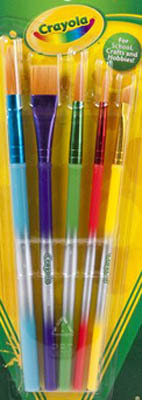 Crayola's Craft Brush Set features 5 Nylon Bristle, Metal Ferrule Brushes, each with a different purpose.