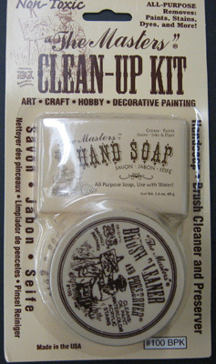 Masters Clean-Up Kit includes1 oz. Brush Cleaner and Preserver and 1.4 oz Hand Soap