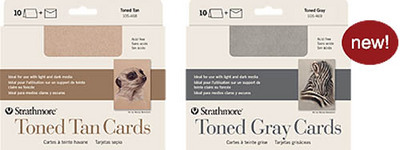Strathmore's popular toned papers are now available at a heavier weight in Toned Cards. These cards are ideal for light and dark media including graphite, chalk, charcoal, sketching stick, markers, china markers, colored pencils, pens and white gel pens. Full size cards are 5" x 6.875" and come in packages of 10. Matching toned envelopes are included, and measure 5.25" x 7.25". Toned papers are 100% recycled, and contains 30% post-consumer fiber. Acid free.