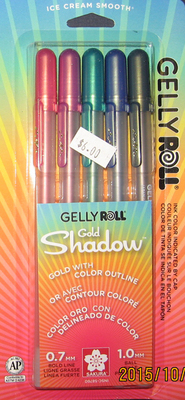 Gelly Roll Gold Shadow™ writes in two tones: gold metallic outlined by a contrasting gel ink color.