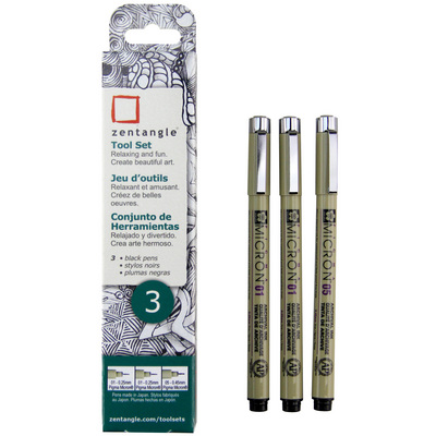 Zentangle - 3 Pen Set - 2 EA Pigma Micron 01 Black; 1 EA Pigma Micron 05 Black