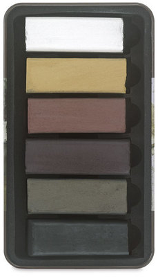 The chunky shape of these extra-large charcoal blocks makes them great fun to use. Derwent XL Blocks can be used for everything from sensitive line work and subtle blending to expressive marks and deep tonal work. Create different marks with the sides, edges, and corners.The set of six charcoal blocks contain one each of Ochre, Sanguine, Mars Violet, Sepia, Black, and White.