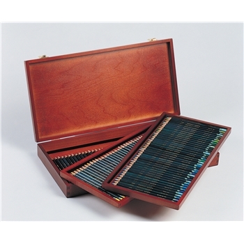 Derwent Artist Colour Pencil Wood Box Set featuring all 120 Colours in a two-tiered Lacquered  Wood Box.