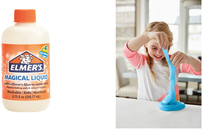 •Less mess, no need for contact solution or baking soda! All you need is Elmer’s Magical Liquid and Elmer’s Glue.