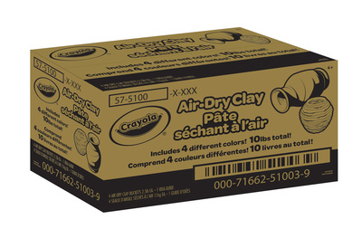 Crayola 10 lb Multi-Color Air Dry Clay Class pack featuring 4 2.5 lb tubs of color; 1 each of Red, Yellow, Blue and White. Gluten free. Pliable material for shaping and modeling, great for children and adults looking to create beautiful clay sculptures at home. Perfect for DIY projects and consistent artistic results.