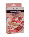 Speedball Speedy-Stamp Perfect for the beginner. 10-page instructional brochure 24 sq. in. Speedy-Stamp Block Wooden handle No. 2 V-shaped cutter No. 4 U-shaped cutter 5 Designs with tracing paper Craft tips brochure for Speedball Brayers